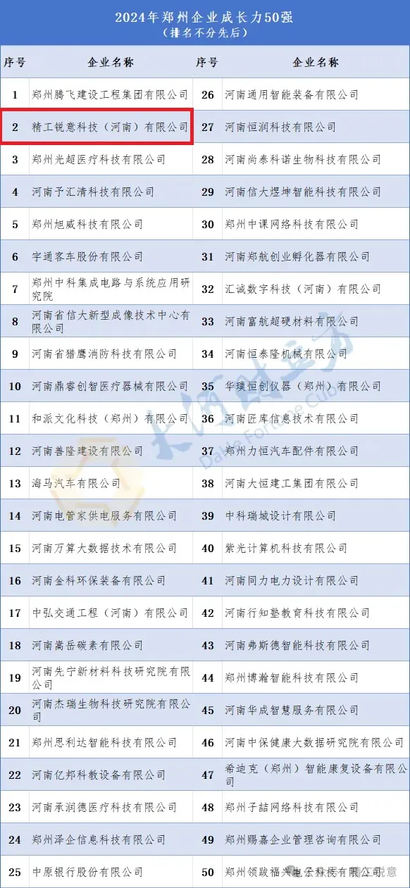 激發創新活力,聚焦超硬材料裝備主業——精工銳意入選2024年鄭州企業成長力50強